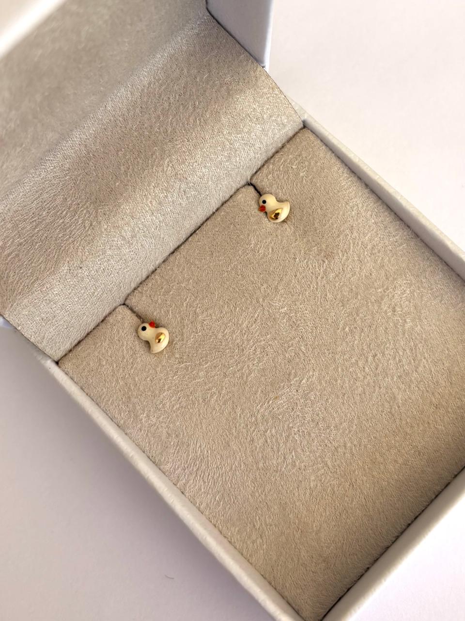 BRINCO EM OURO AMARELO 18KT PATINHO ESMALTADO.