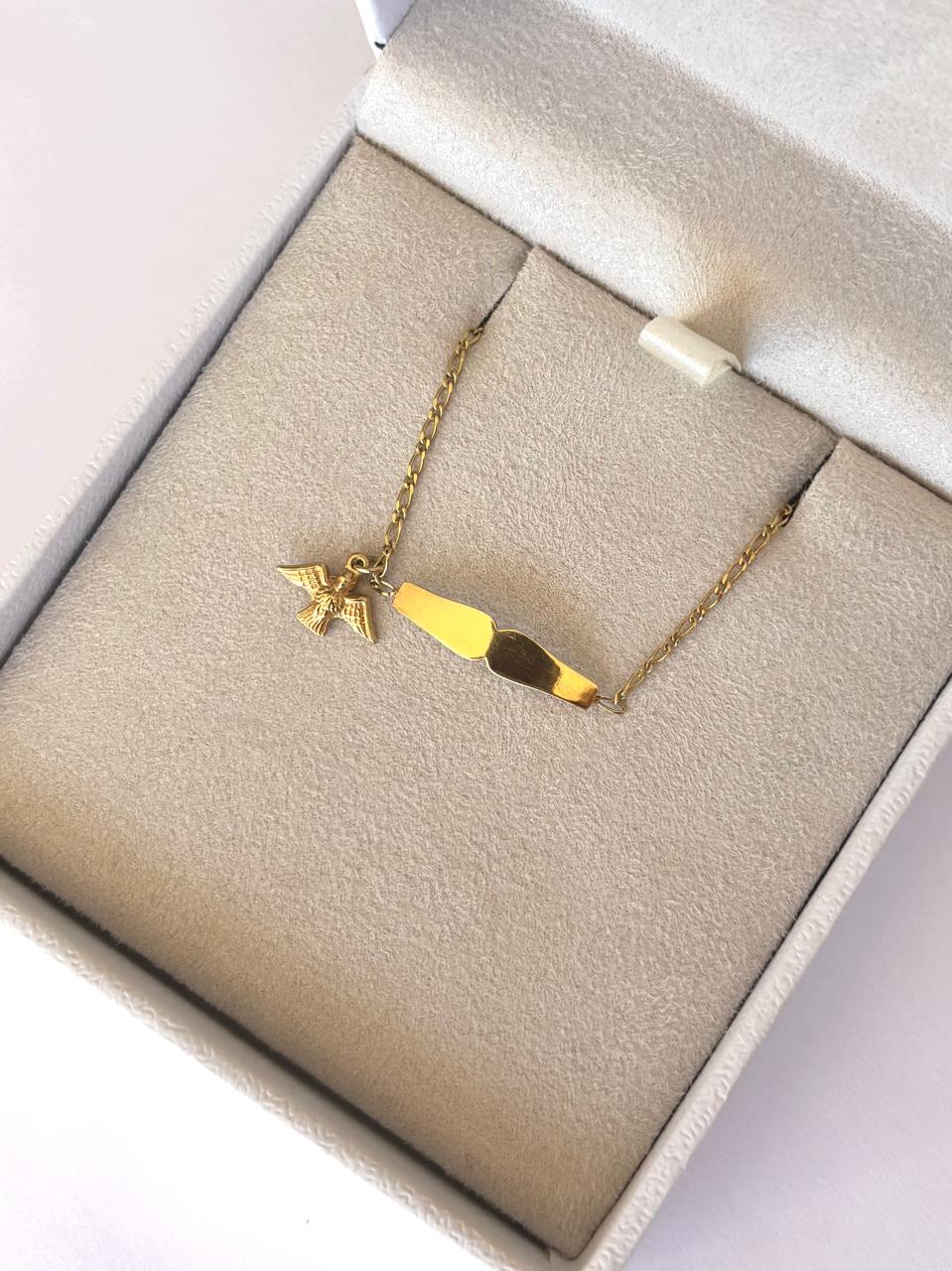 PULSEIRA EM OURO AMARELO 18KT COM CHAPINHA E PINGENTE ESPÍRITO SANTO.